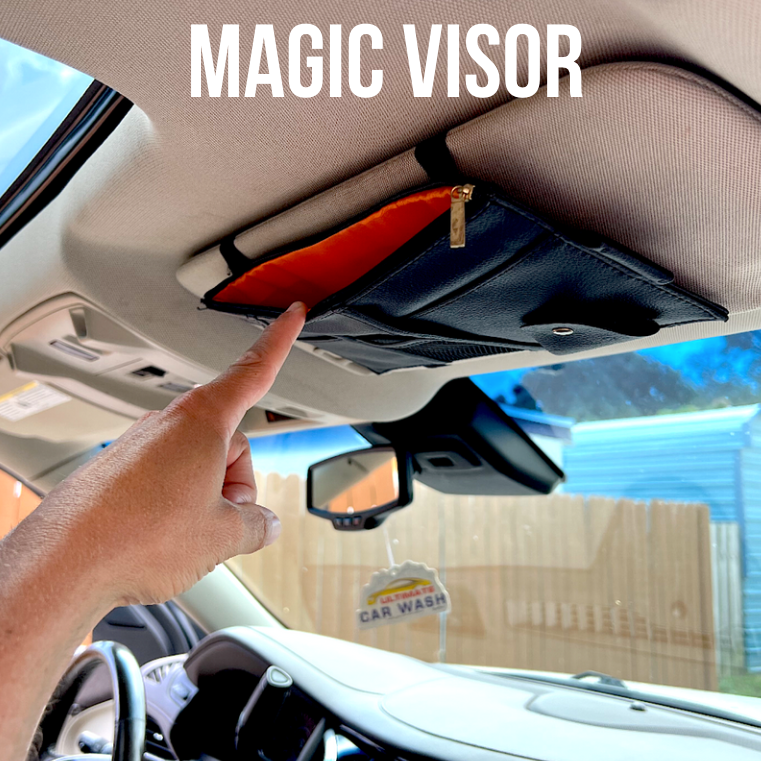 The Road Trip Kit includes 2 CarCans, 1 Magic Cushion, 1 Magic Visor 1 Car Pillow, 1 Magic Mount, and the one and only Clutter Box!
